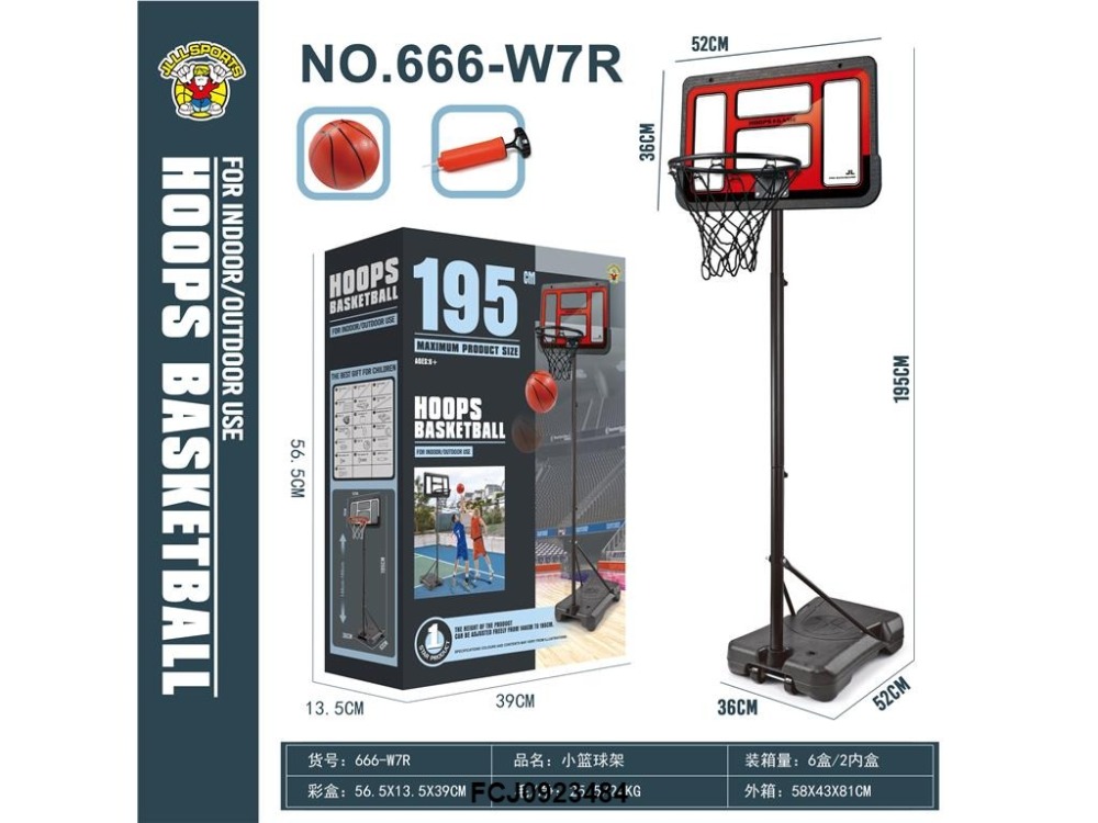 Баскетбольне кільце 666-W7R на стійці (мет.),щит(плас.),кільце(мет.),сітка,насос,кор.,56,5-38,5-15см