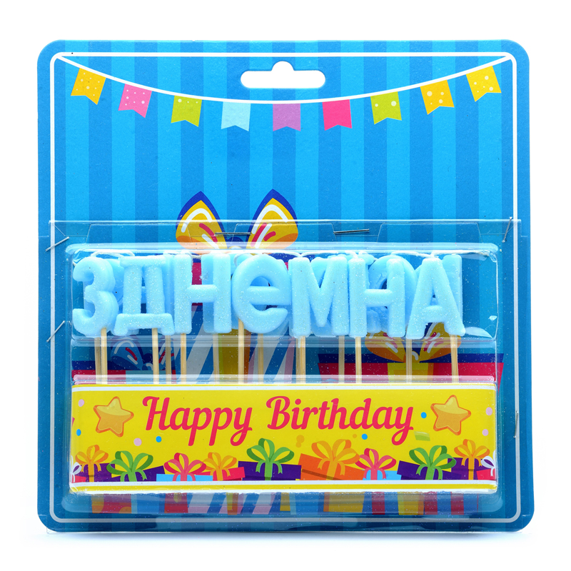 Свічка для торта побуквенна "З Днем народження" блакитні