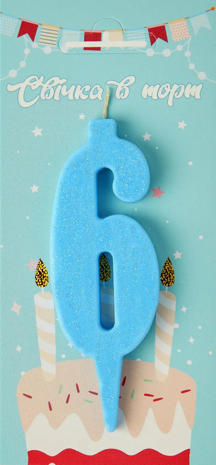 Свічка в торт цифра Синя (блиск) 6