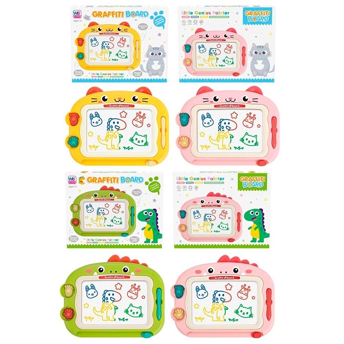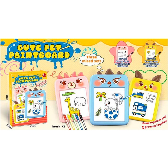 Досточка для малювання 009-2187-2188 кольорова, 2 печатки, 2 види (кіт, динозавр) по 2 кольори,кор.,