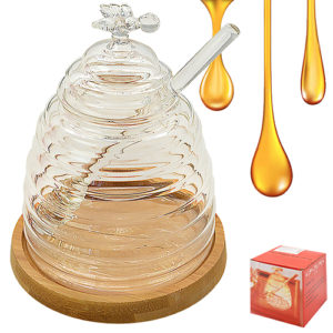 Банка для меду з ложкою на бамбуковій підставці 500мл., R30172