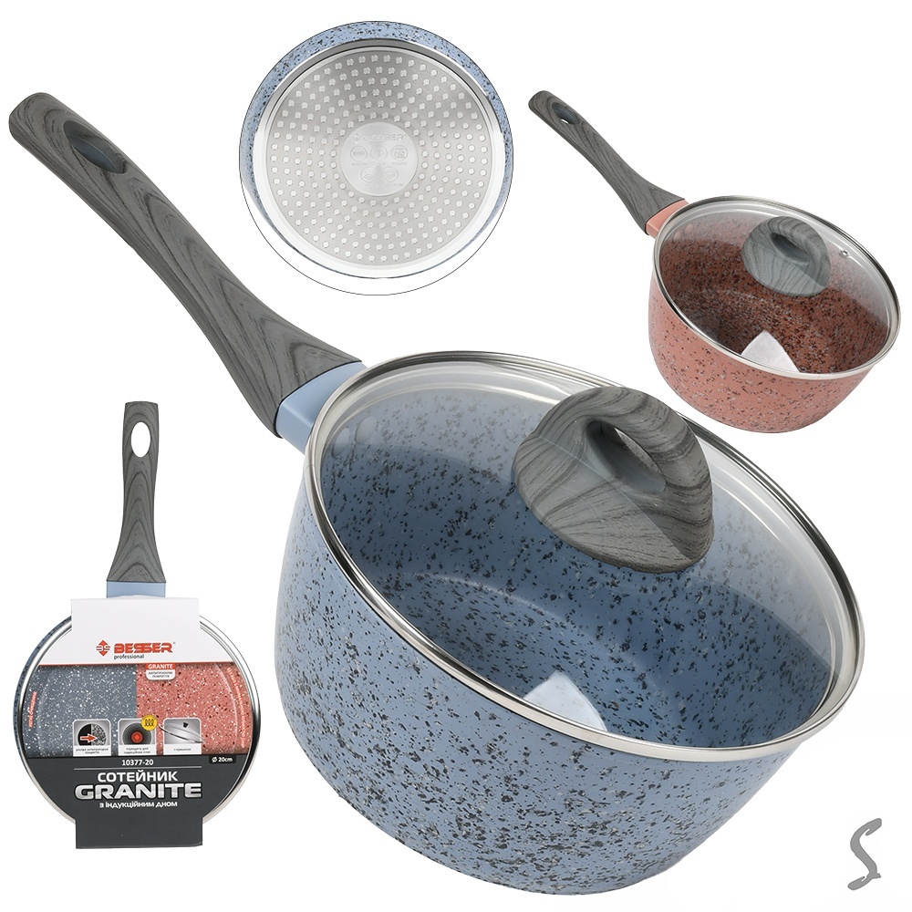Сотейник з кришкою литий "Granite" інд. дно 16*7.5см 10377-16