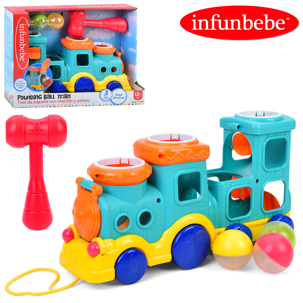 Каталка PL5233 на шнурі, поїзд, 30см, стукачка, рух.і деталі,кульки 3шт, молоток, в кор.35,5-25-11см