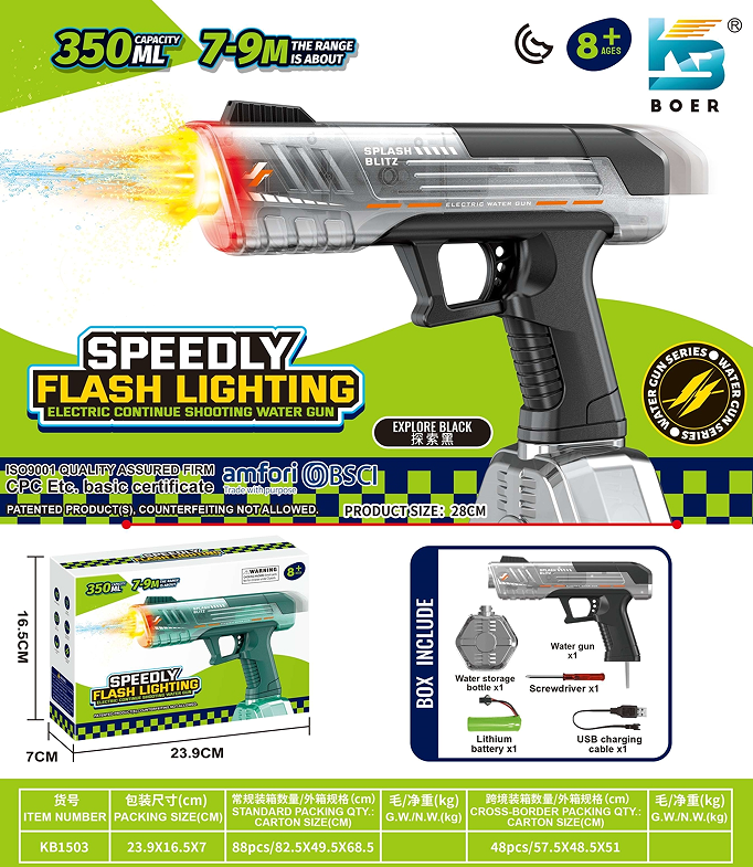 Водяний автомат KB1503 водяний пістолет, акум., рухлива деталь, USB, світло, кор., 24-16,5-7 см.