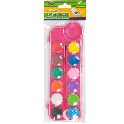Фарби аквар. 12 кол., пласт./кор., з/п., рожевий