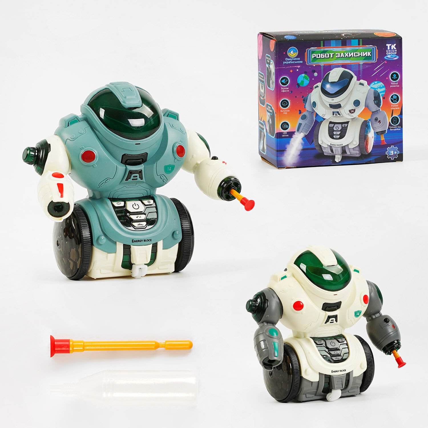 Робот "Захисник" 30955 (72) “TK Group”, ОЗВУЧУВАННЯ УКРАЇНСЬКОЮ МОВОЮ, LED-підсвічування, пісні, режим демонстрації, парогенератор, стріляє присосками, в коробці