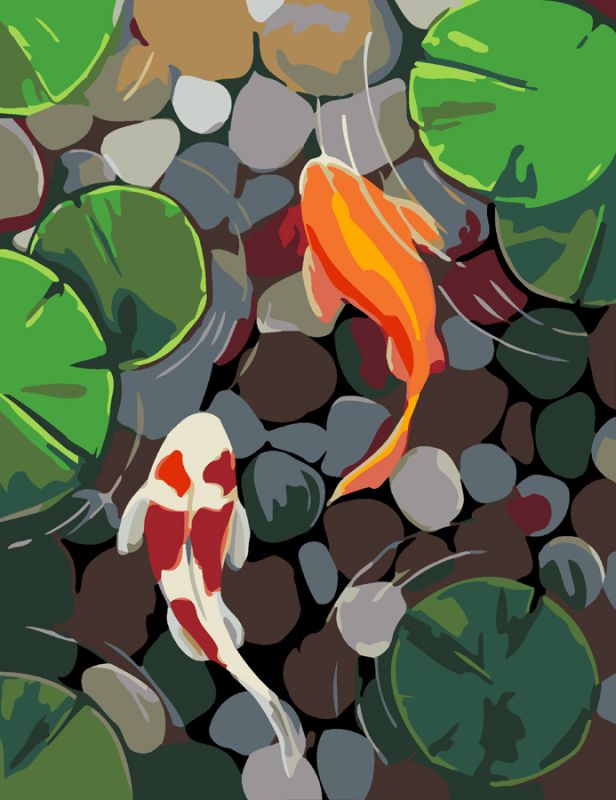 Набор, картина по номерам, "Рыбки в пруду", 35х45см, ROSA START