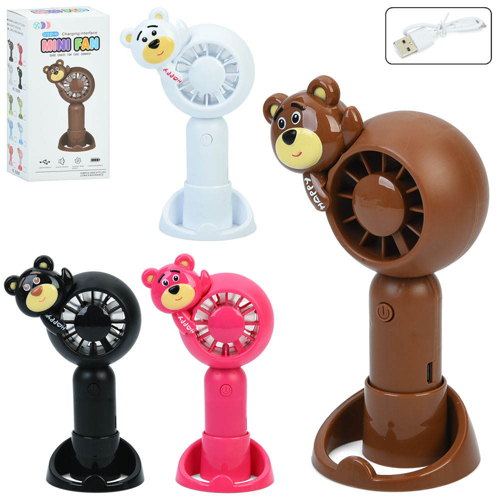 Вентилятор MK 5719 2в1(ручний/портативний,настільний),ведмедик,3 швидкості,акум,USB,мікс кол.,світло