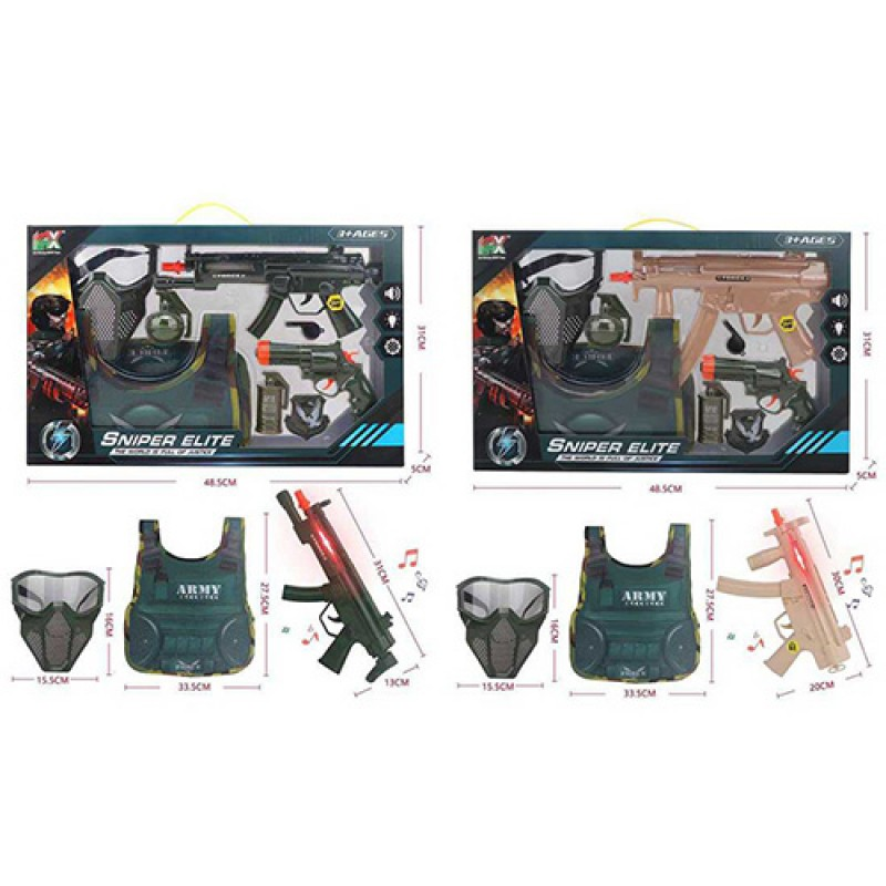 Набір зі зброєю 333D-1-2 військов.,жилет,автомат,пістолет,маска,2види,муз.,світ.,бат.,кор,48-31-5см.