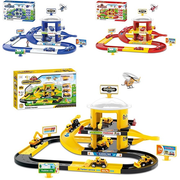 Опис Гараж g74-75-7688 2 поверхи, транспорт 4шт., 29дет., 3види, кор., 46-28-10,5см.