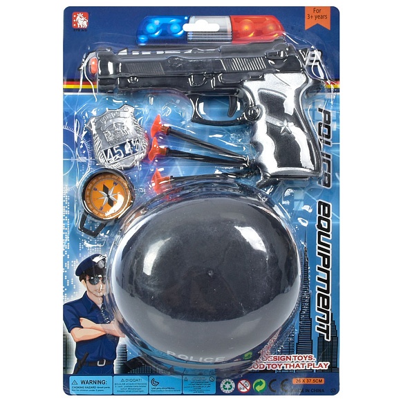 Опис Набір амуніції 32-15 каска, пістолет, кулі-присоски, значок, лист, 26-37-12 см.