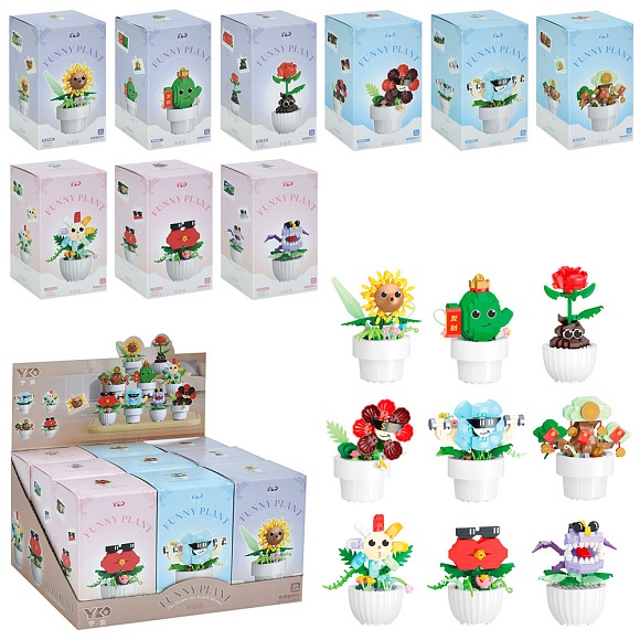 Конструктор P2307 квітка у горщику, від 90 дет., кор., 9 шт. (9 видів) в диспл., 28-24,5-15,5 см.