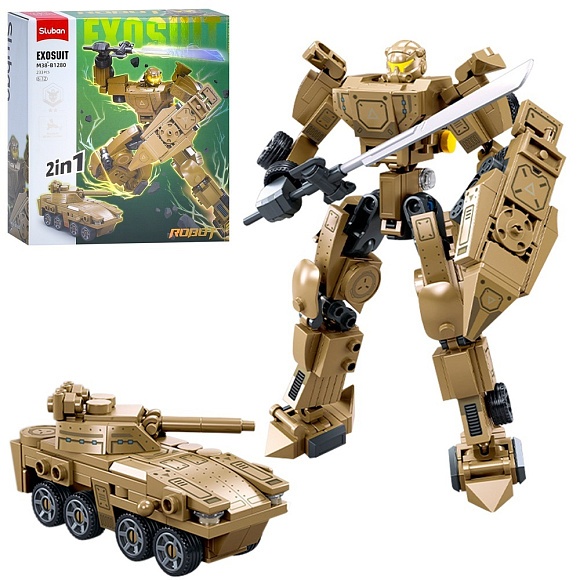 Конструктор SLUBAN M38-B1280 2в1 (робот, танк), фігурка, 233 дет., кор., 22-23,5-7 см.