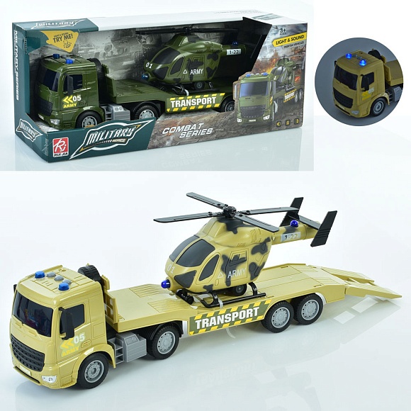 Трейлер RJ3398 інерц., військ., гелікоптер, 2 кольори, муз., світло, бат. (табл.), кор.,42-16,5-10см