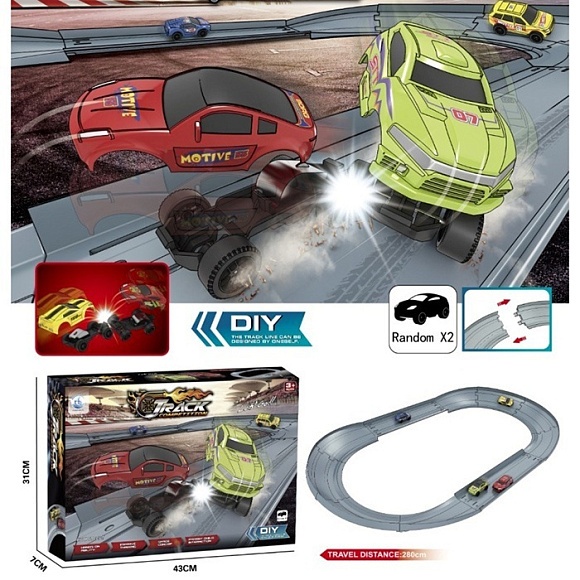 Трек A64-1A дистанція 51-32см.(126см.), машинки 2шт., від мережі 220V або бат., кор.,34,5-30,5-5,5см