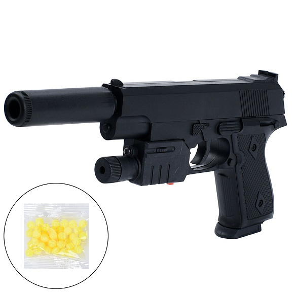Пістолет 239AS пластикові кулі, лазер, світло, бат.(табл), кул., 15-20-3 см.