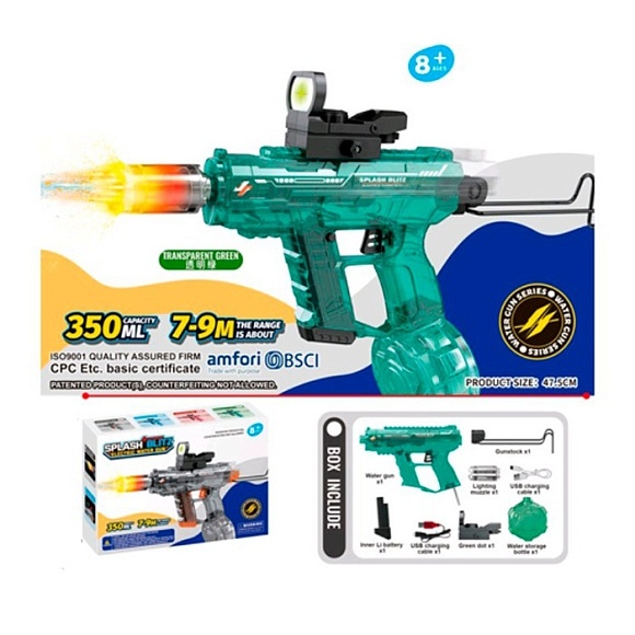 Опис Водяний автомат kb1399 рухлива деталь, акум., приціл, usb, світло, кор., 25-18-7,5 см.