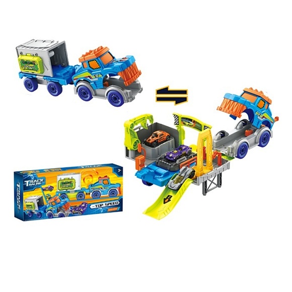 Опис Набiр машинок 8142 машина+причеп, трек, рухливі деталі, машинки 2шт., кор., 48-20-10 см.