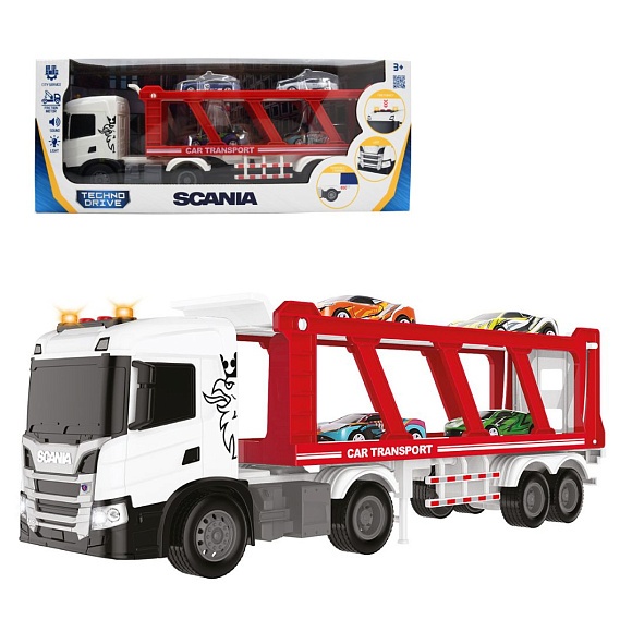 Ігровий набір серії "Large Truck" – АВТОПЕРЕВІЗНИК SCANIA (автоперевізник, 4 машини, світло, звук)