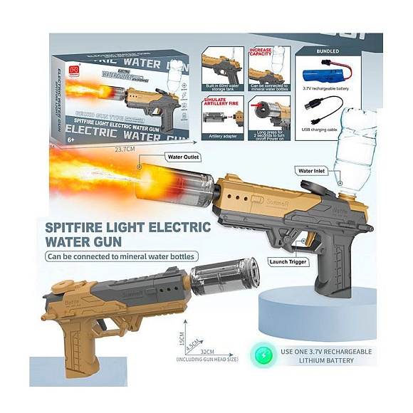 Водяний автомат 7208B водяний пістолет,32см,акум,USB,світло,колба до комп.невходить.2кольори.кор.