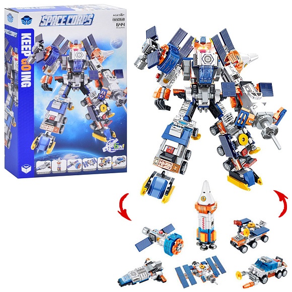 Опис Конструктор bb068 космічна техніка, 6в1, 644 дет., кор., 42-27-6,5 см.