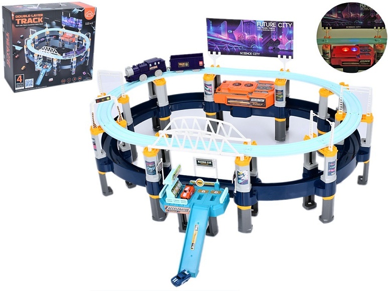 Опис Трек t906a поїзд-їздить, машинки, рух. деталі, 113 дет., муз., світло, бат., кор., 37,5-34-16 см.