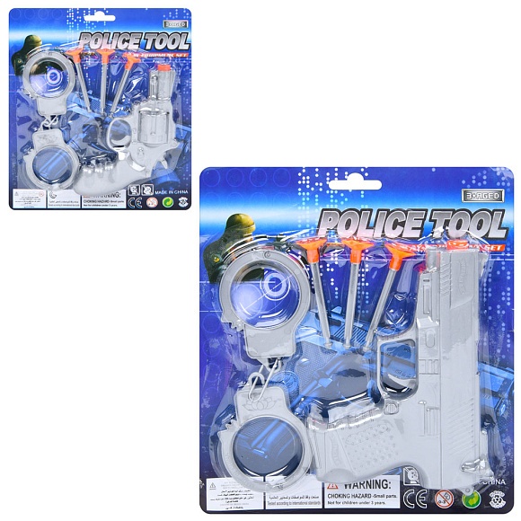 Набір зі зброєю 169F-S-2 поліція, пістолет, присоски 3 шт., наручники, 2 види, лист, 19-21,5-3 см.