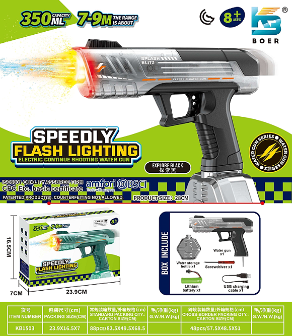 Опис Водяний автомат KB1503 водяний пістолет, акум., рухлива деталь, USB, світло, кор., 24-16,5-7 см.