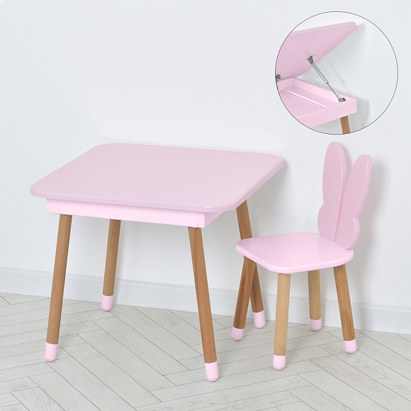 Опис Столик 10-025r-box зі стільчиком, метелик, ящик, рожевий.