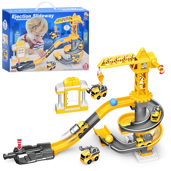 Гараж 222-B124 на запуску, машинки 4 шт., підйомний кран, кор., 40-28-9,5 см.