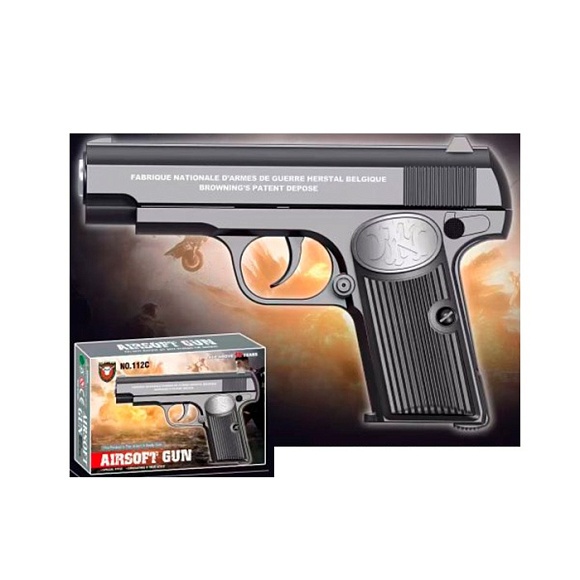 Опис Пістолет 112c 14см, стріляє пластиковими кулями, кор.,, 17,5-12-3,5см