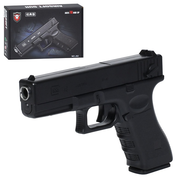 Пістолет J02 19см, стріляє пластиковими кулями, кор., 24,5-17-4,5см