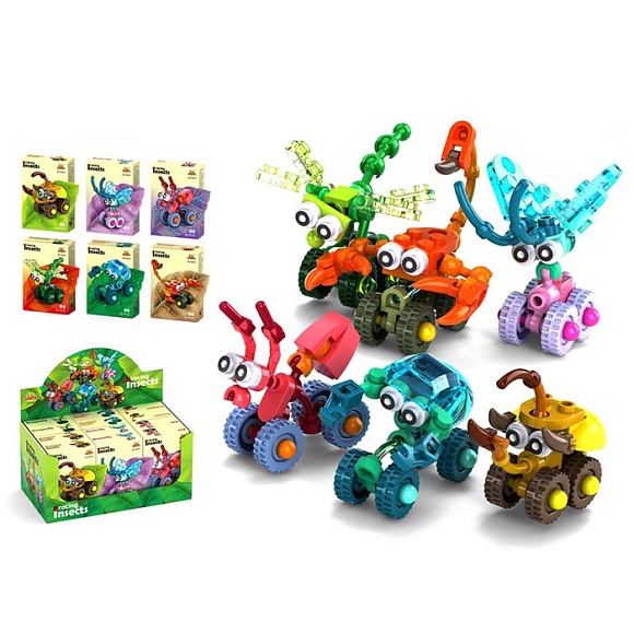 Опис Конструктор qc3003 машинка-комаха, від 25 дет., кор., 12 шт. (6 видів) в диспл., 23,5-11,5-12,5 см.