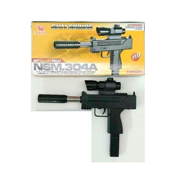 Опис Автомат 304a 33,5см, пластикові кулі, лазер, прицел, на бат(табл), кор., 37,5-17,5-5см