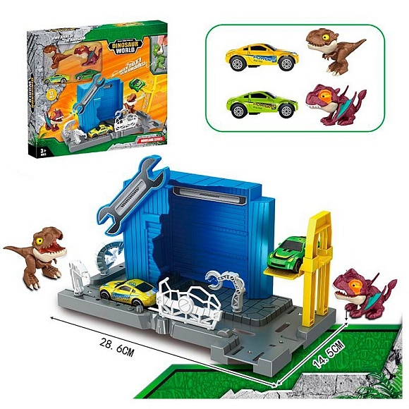 Гараж 8129 2 машинки, динозаври 2 шт.-рухливі деталі, 12 дет., кор., 36,5-31,5-5 см.