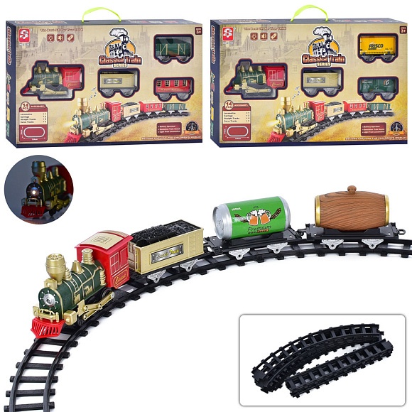 Опис Залізниця 3118abc локомотив,134-74см., 3 вагони, 3 види, бат., муз., світло, кор. 49-29-7 см.