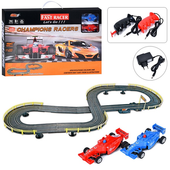 Опис Трек 6605-B дист.кер.(на шнурі), 1:43, машинка 2шт., від мережі 220V, кор., 55,5-36-5,5 см.