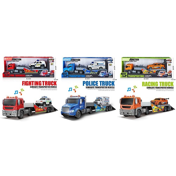 Трейлер JS202A-2CS-2D-1 інерція,1:16, звук,світло,машина,гумові колеса,3 види.бат.кор.52,5-20-12,5см