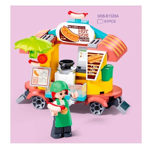 Конструктор SLUBAN M38-B1329A рожева серія, кафе на колесах, фігурка, 81 дет., кор., 12-12-6 см.