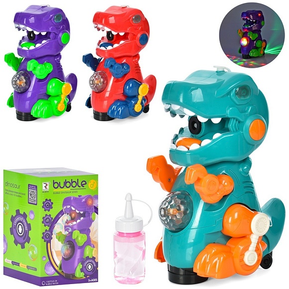 Мильна гра ZR161 динозавр, їздить, запаска, 3 кольори, муз., світло, бат., кор., 14,5-22-14,5 см.