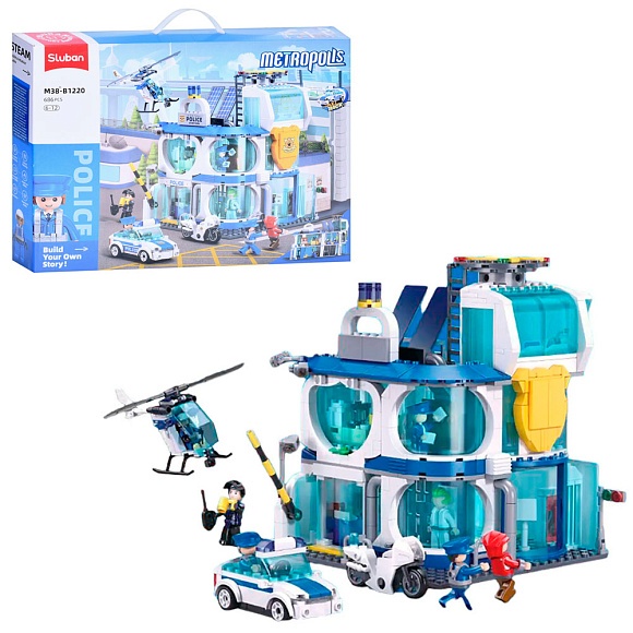 Опис Конструктор sluban m38-b1220 "metropolis": Центральний відділ поліції, 686 дет.