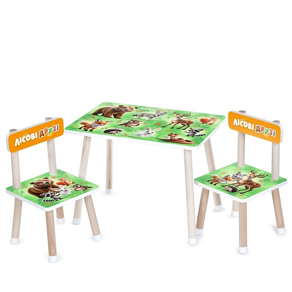 Столик M 501-3 2 стільчика, дерев'яний, лісові друзі
