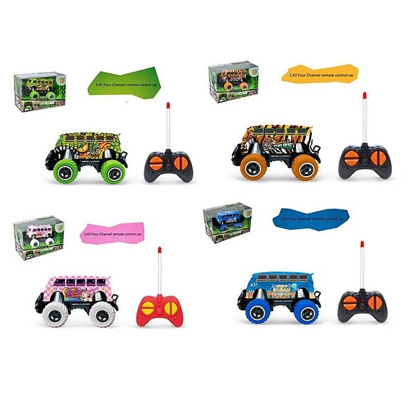 Опис Автобус 999BS-1-2-3-4 радіокер., гумові колеса, 4 види, світло, бат., кор., 18,5-12,5-10 см.