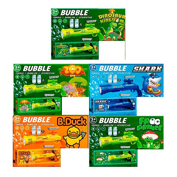 Мильні бульбашки PP1277-1-5-6-8-17-22 пістолет/бластер,42см,світ,запаска2шт,мікс видів.бат.кор.