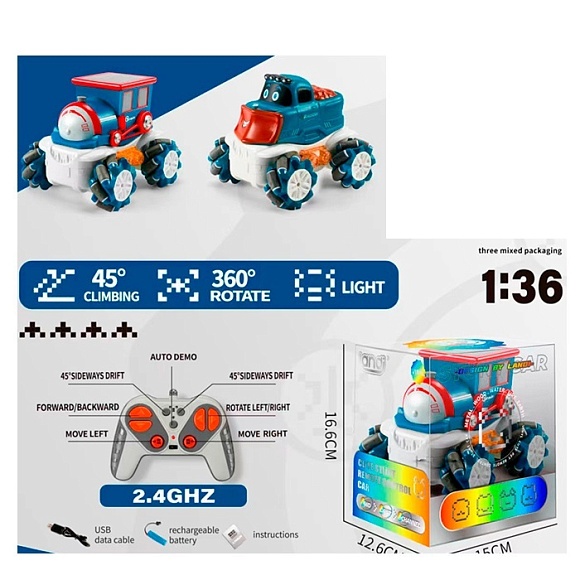 Опис Машинка 888-7 р/к2,4g, акум,14см, 1:36, світло, оберт360, кол.-рол., usbзаряд.,2 види,в кор-ці/слюда