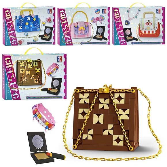 Конструктор 123-910-1-2-3 рожева серія, сумка, наліпки, від 468 дет., 4 види, кор., 38-26-5 см.
