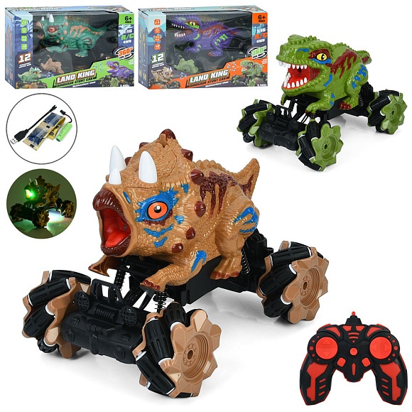 Опис Машина 688-11-22 радіок.2,4g,акум.,1:16,корпус-диноз.,вод.кулі,usb,2види по 2кольори,муз.,світло,кор