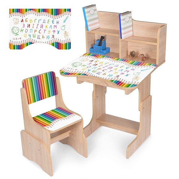 Парта N 2071-11-3 зі стільчиком, регул.висота, олівці, укр. абетка, дуб сонома