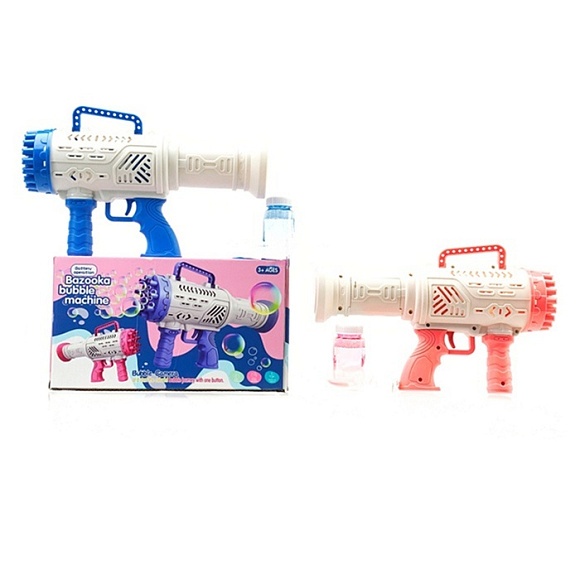Опис Мильні бульбашки 117-9 автомат/бластер, запаска, мікс кольорів, бат., кор., 28-16-8 см.