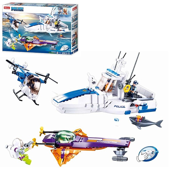 Опис Конструктор sluban m38-b0827 "police": Поліцейська гонитва на воді, 559 дет.